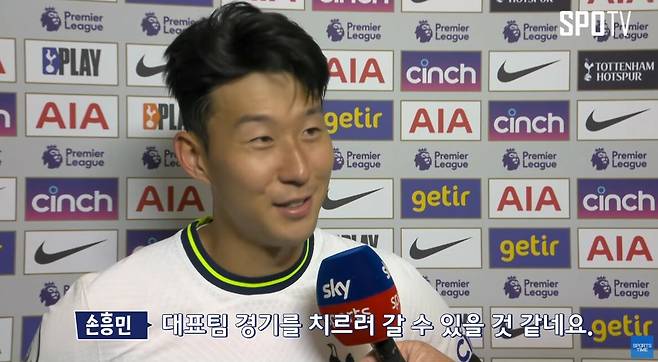 경기 후 인터뷰장에 들어선 손흥민의 표정도 밝아졌다.