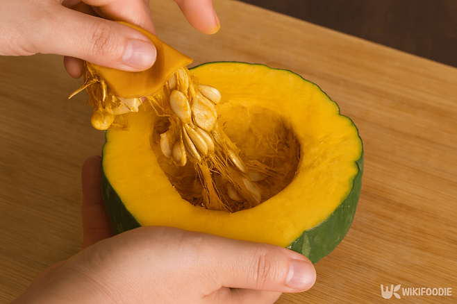 1. 단호박을 깨끗이 씻어 전자레인지에 2분간 돌린다.