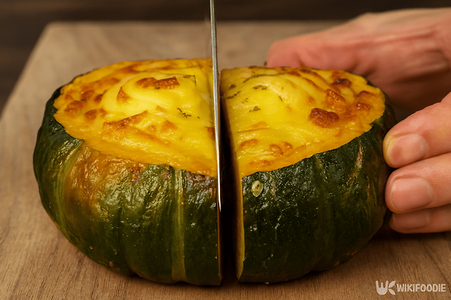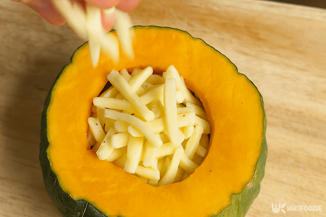 먼저 단호박을 깨끗이 씻은 뒤 전자레인지에 2분간 돌린다. 이렇게 하면 껍질이 부드러워져 자르기 쉽다. 윗부분을 뚜껑처럼 자르고 속의 씨를 숟가락으로 제거한다. 안쪽에 계란을 넣되, 반드시 노른자를 터뜨려야 터지지 않는다. 소금과 후추로 간을 맞추고 모짜렐라 치즈를 듬뿍 올린다. 전자레인지에 5분간 조리하면 달걀이 부드럽게 익는다. 덜 익었을 경우 1~2분 더 돌리면 완성이다.