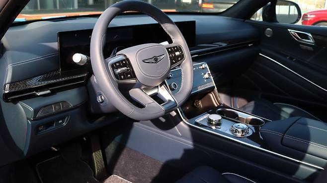 여기에 더욱 스포티한 외관 디자인을 자랑하는 GV80 쿠페는 기존 모델에 비해 더욱 스포티한 인상을 심어주는데 스포티한 루프 라인과 함께 더욱 대형화된 공기 흡입구 디자인을 비롯한 듀얼 배기 팁이 포함된 새로운 범퍼 디자인 등 GV80 쿠페 특유의 역동적인 이미지를 완성했습니다.