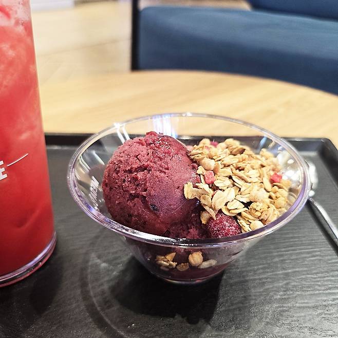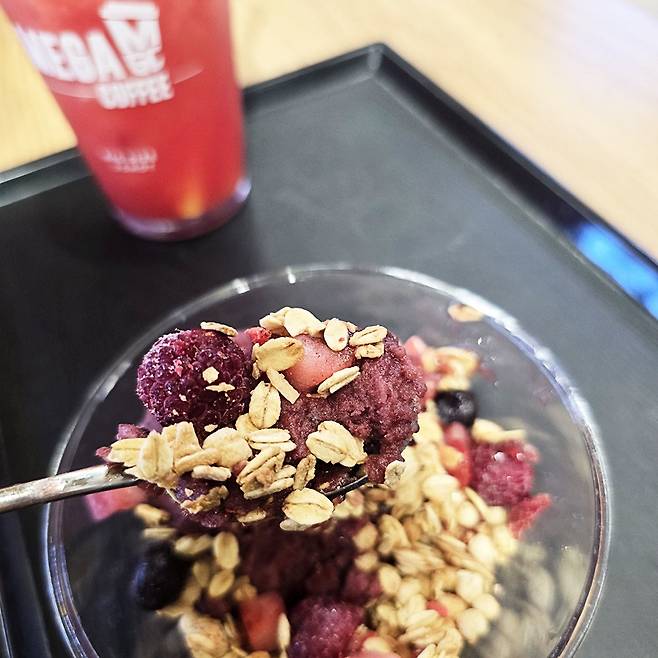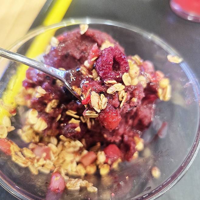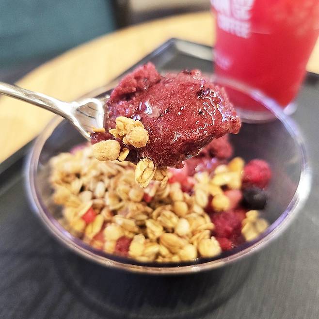 아사이베리 스무디가 부드럽게 깔려 있고,
