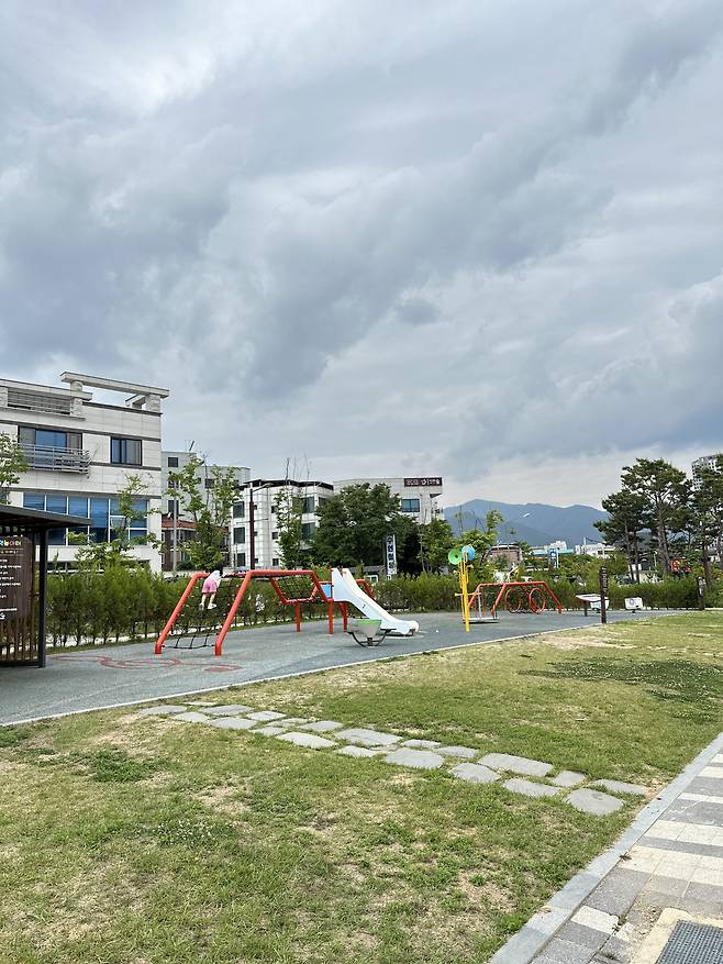 어린이 음악 놀이터 구경을 마치고 나면 건물 밖에 위치한 놀이터에서 또 한번 마음껏 뛰어놀 수 있어요. 산과 강이 어우러진 풍경을 배경으로, 미끄럼틀, 시소 같은 전통 놀이기구도 곳곳에 있어, 음악 체험 외에도 다양한 놀이를 즐길 수 있죠.