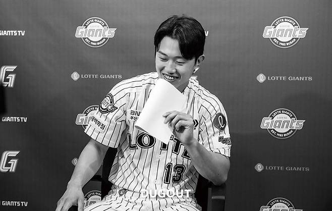 기운 핑계로 배트를 바꾼 건 맞는데 사실 드문 일이에요. 원래는 (빅터) 레이예스 선수의 방망이를 썼는데, ‘안타가 괜히 200개씩 나오는 게 아니구나’ 하고 느껴서 저도 그 모델로 주문했어요. 다만 쓰던 게 다 부서지고 새로 시킨 배트도 아직 안 와서 요샌 (황)성빈이 형 방망이를 사용하고 있습니다.