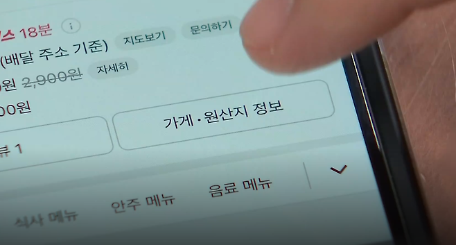 '원산지표시법'은 배달앱도 원산지를 표시하도록 하고 있습니다.