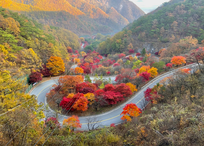 사계절 다른 매력으로 여행객을 반기는 고갯길이 있습니다.
