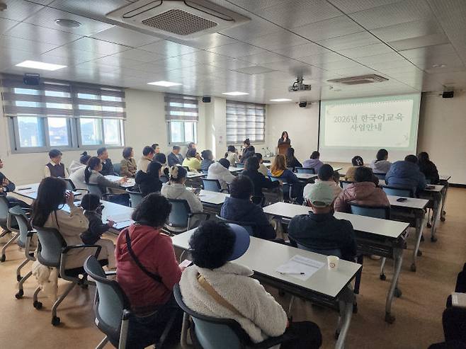올해 한국어교육은 총 4개 반으로 운영된다. △한국어 읽기반(초급) △쓰기반(야간) △듣기반(산동권역: 정산·청남·목면·장평) △중도입국자녀반으로 구성되며, 각 반은 주 2회, 회당 2시간씩 총 50회 과정으로 진행된다.