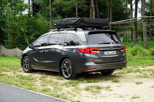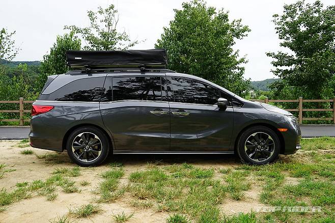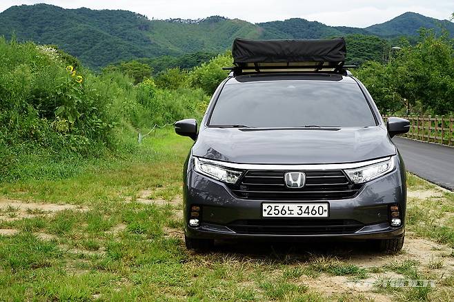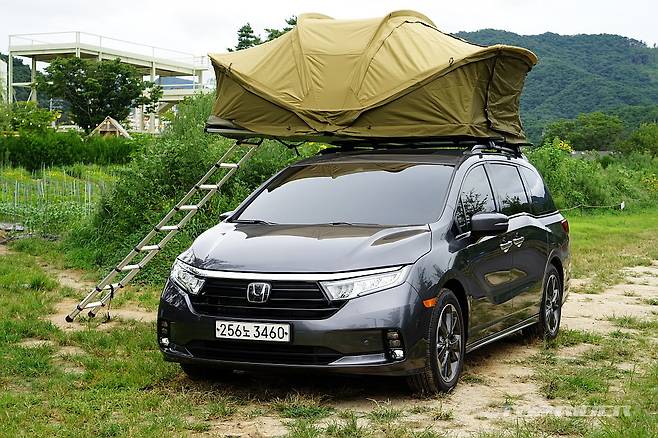 혼다 오딧세이, 툴레 루프탑 텐트 버전을 시승했다. 혼다 오딧세이는 8인승 미니밴으로, 다인 승차시에도 여유로운 적재공간을 확보했는데, 여기에 루프탑 텐트를 적용해 편리한 오토캠핑을 제공하는 것이 특징이다. 이들 조합의 편의성과 활용성은 대형 SUV를 한참 앞선다.