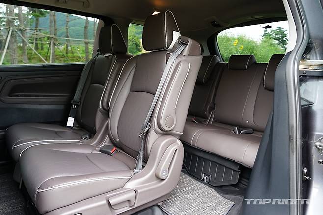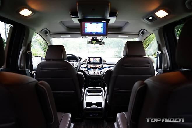 조수석 시트에 럼버 서포트 기능이 추가된 것도 이번 부분변경의 변화에 포함된다. 오딧세이의 가장 큰 특징 중 하나는 실내의 모든 시트가 안락하게 설계된 것이다. 1열이나 2열의 안락함은 물론 3열 시트의 구성이나 공간도 성인이 장거리 여행하기에 부족하지 않다.