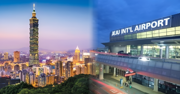 마지막 제주공항 발 대만 타이페이/타오위안 공항행은 타이거에어 타이완 항공11: 00 출발(주 4회), 티웨이항공 12:05 출발(주 7회), 이스타항공 22:40출발(주 7회)이 있습니다.