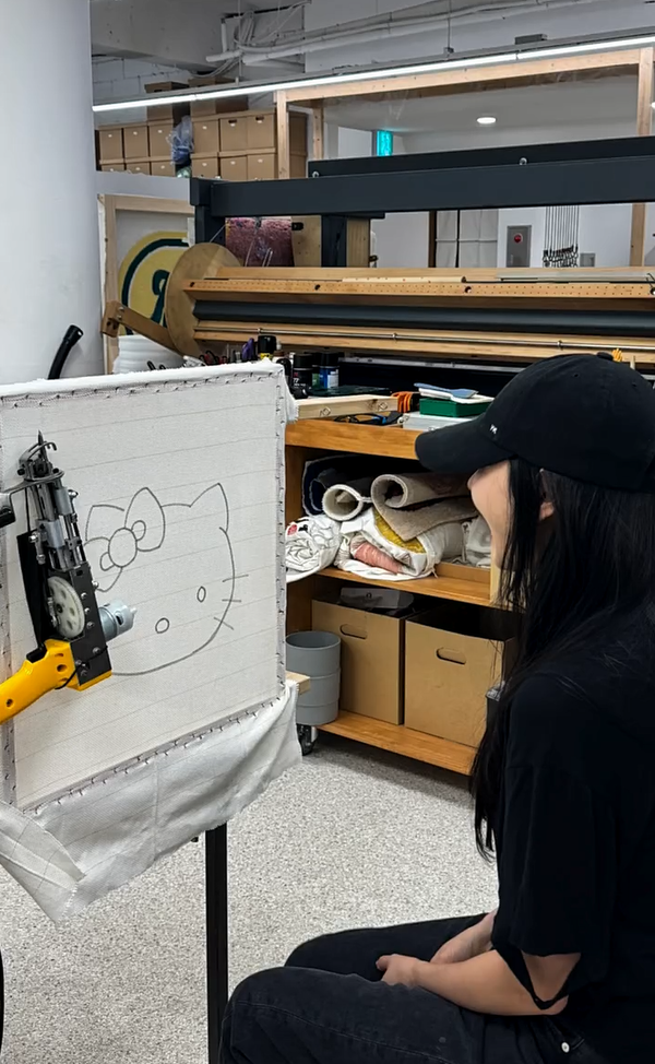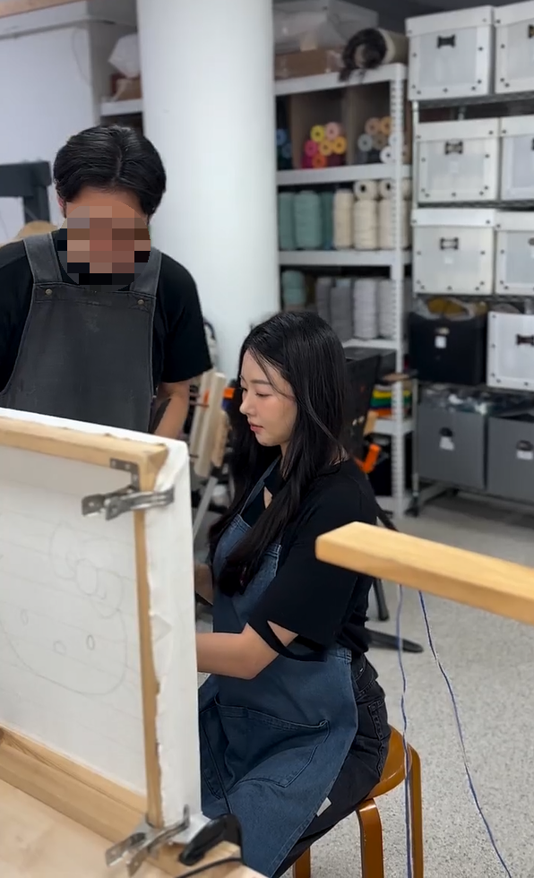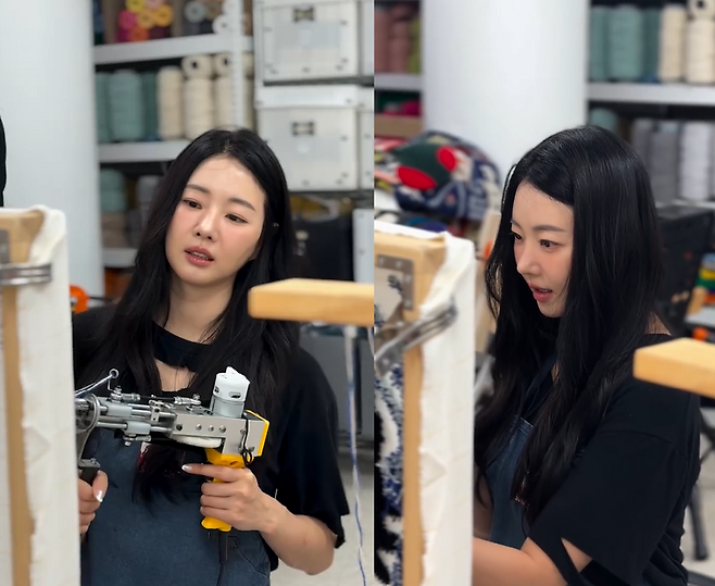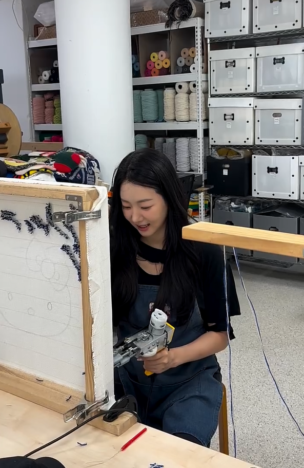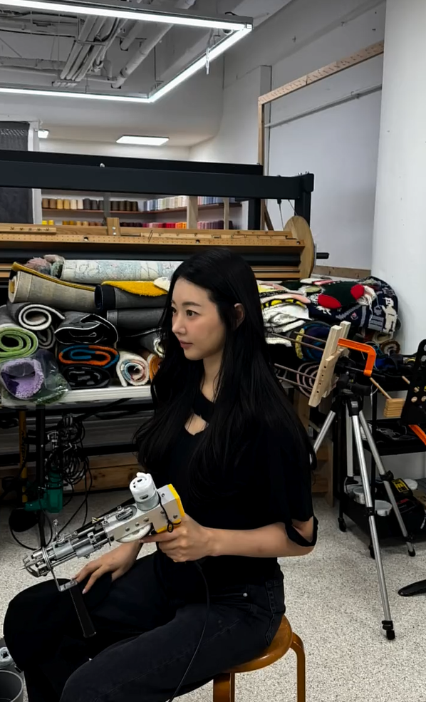 사진 속 김사랑은 최근 유행하는 공예인 터프팅에 집중하며 진지한 표정으로 작업에 열중하는 모습을 보여주고 있었습니다.