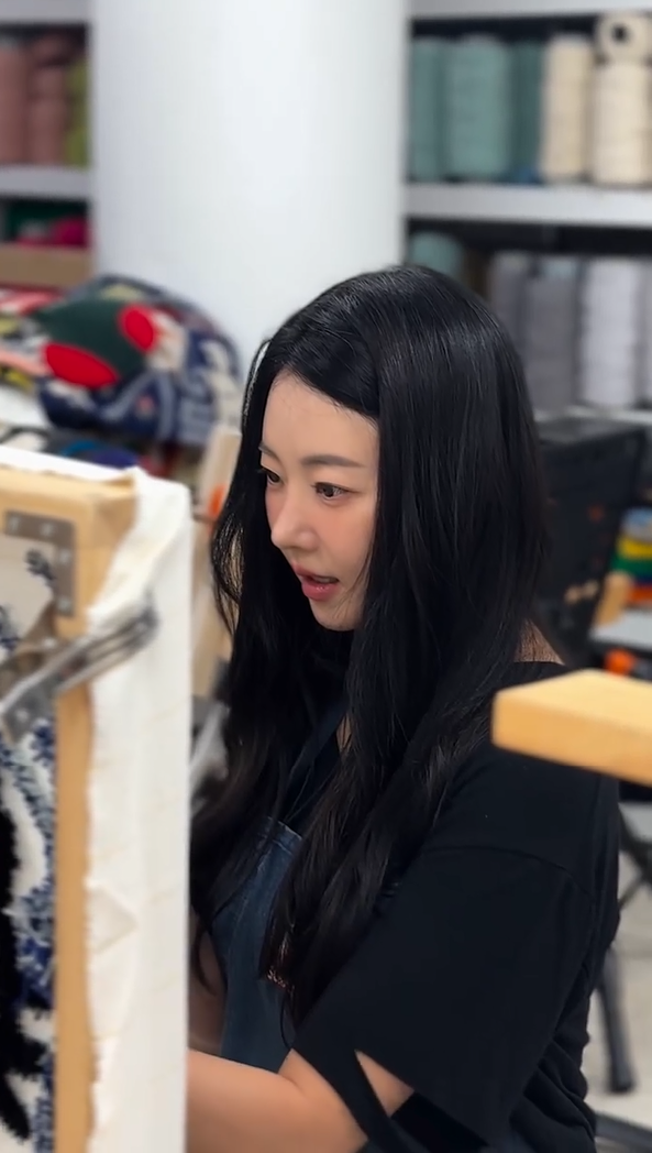 수많은 실타래에 둘러싸인 그녀의 모습은 마치 동화 속 한 장면처럼 비현실적인 아름다움을 느끼게 하는 매력이 있었습니다.