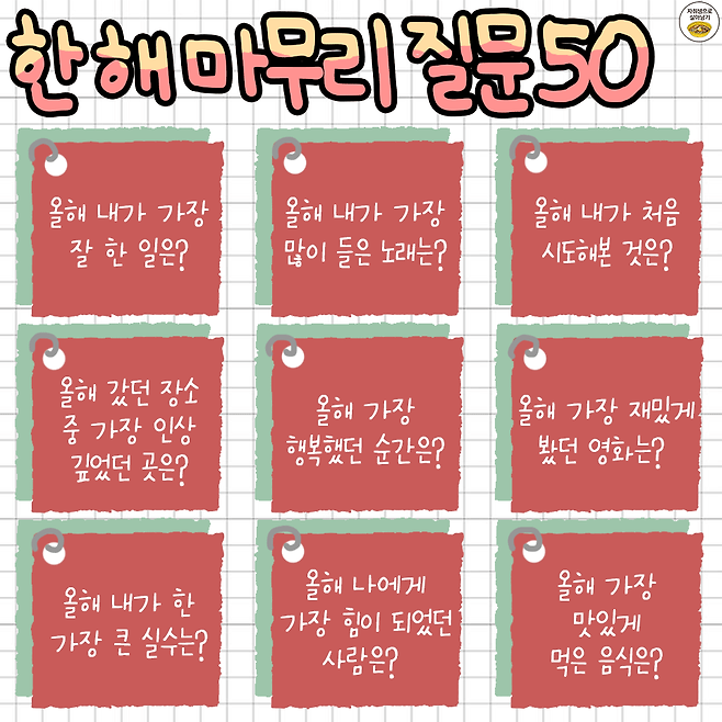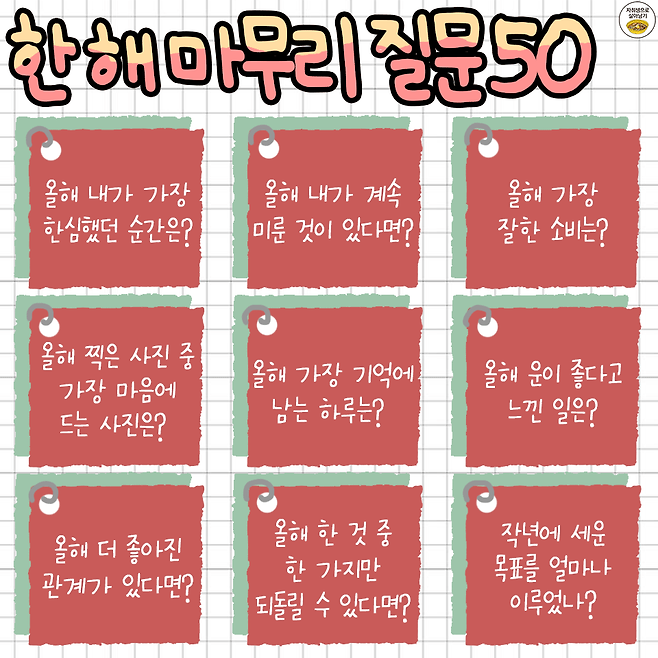 2023년을 돌아보기 좋은 연말 마무리 질문 50개
