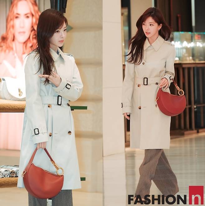 이날 행사에서 노정의는 긴 웨이브 헤어 스타일에 벨티드 트렌치 코트를 입고 반달 핸드백을 매치한 나들이룩으로 차분하면서도 시크한 매력을 뽐냈다.