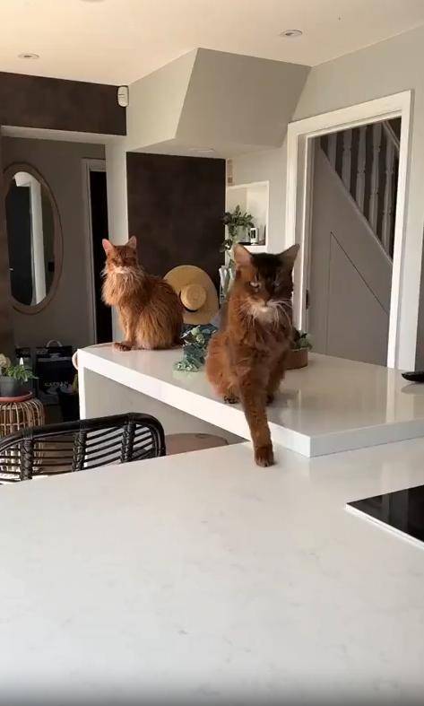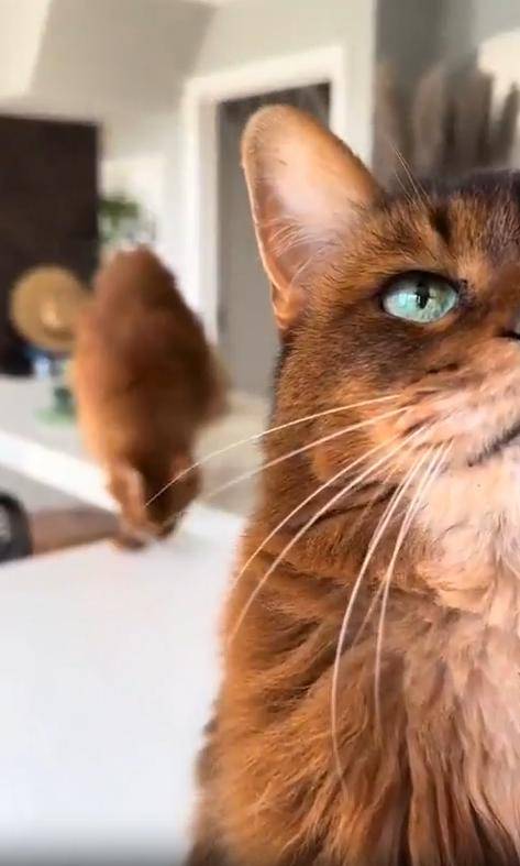 눈에 띄는 건 그들의 털입니다. 소말리 고양이 특유의 윤기 흐르는 갈색빛 털이 조명을 받은 듯 은은하게 반짝입니다. 몸짓은 나른한데도 집중력 있는 눈동자가 묘하게 조화를 이루며, 보는 사람까지 멍하니 빠져들게 만들죠. 레딧의 한 댓글은 이 장면을 이렇게 표현했어요. “마치 뷰티 브랜드 광고에 나온 고양이 모델 같아.”