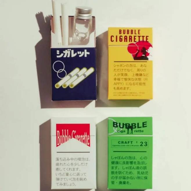 담배 아니고 비눗방울입니다만… 도쿄예술대 학생들이 예술제에 출품했던 ‘버블 시가렛’이다. 담배처럼 생겼지만 하얀 스틱 안에는 비눗방울 용액이 들어있어 바람을 불어넣으면 비눗방울이 나온다. 심지어 아이디어샵(https://tinyurl.com/3r2nsk6a)에서 제품으로 만들어 판매 중이다(현재는 품절). 가격은 한화로 1만 3,000원.