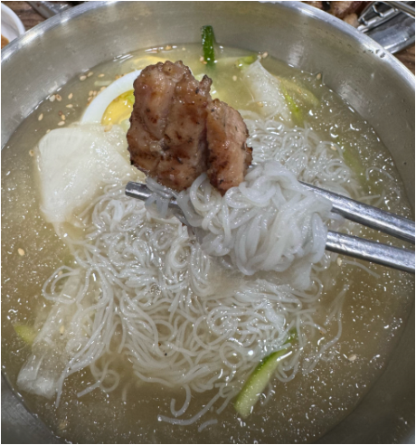 밑반찬도 다양하게 나와요. 마카로니 샐러드는 부드럽고 달콤해서 고기와 찰떡궁합이고, 양파장아찌는 짭짤하면서도 시원한 맛으로 고기의 느끼함을 잡아줘요. 오후 3시 이전 방문하면 시원한 냉면까지 무료로 제공되니, 이왕이면 점심이나 이른 저녁 시간대를 노려보는 게 팁이에요.
