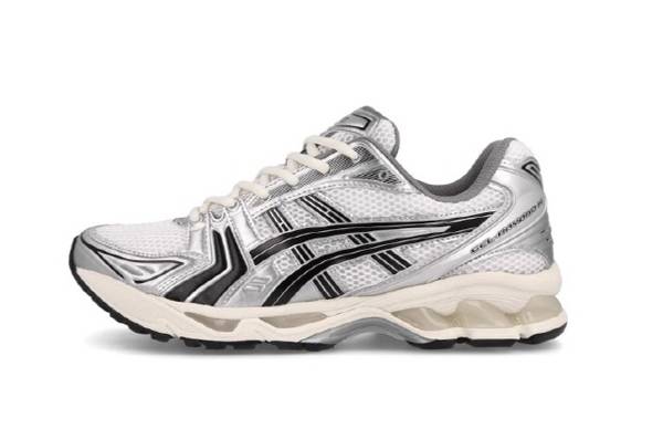 아식스의 ‘젤 카야노 14’는 클래식 운동화로 현대의 많은 이들이 신는 제품이다. 클래식하고 시대를 초월한 실루엣이 호평을 받는데, 밑창의 힐 디자인과 큰 메시 디테일, 은색 패널 등이 밀레니엄 시대를 연상시킨다고 평가된다. 선명한 색상의 메시 바탕에 메탈릭한 실버 오버레이가 특징이며, 전체적으로 디보싱된 디테일이 눈에 띄는 제품이다. 화이트 미드나잇 색상의 정상 판매가는 169,000원이다.