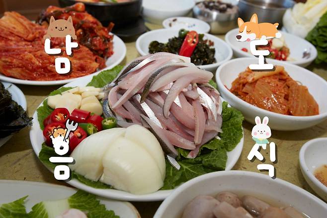 가짓수에 놀라고, 저렴한 가격에 놀라고, 맛에 놀라는 이른바 3연타로 놀라 자빠지는 남도 음식 베스트중 베스트. 여수 한정식 상차림은 밥, 국, 김치, 조치(찌개), 간장과 초장등을 제외한 반찬을 기본으로 하여 생채, 숙채, 구이류, 조림류, 회, 편육 등 40여 가지의 다양한 음식들이 주류를 이룹니다.