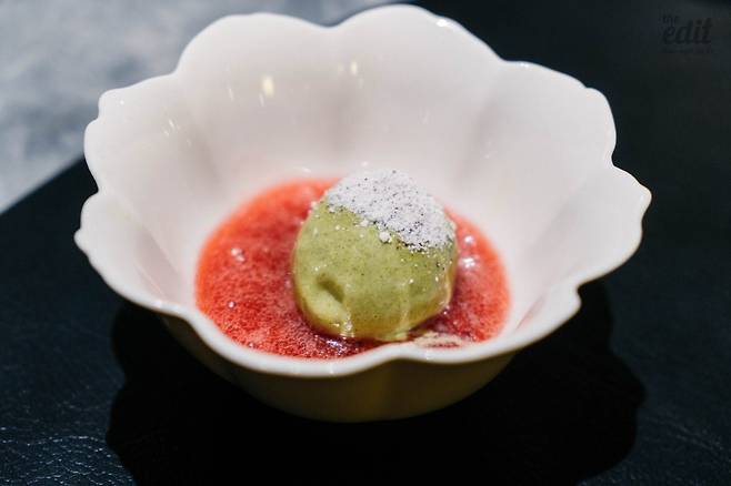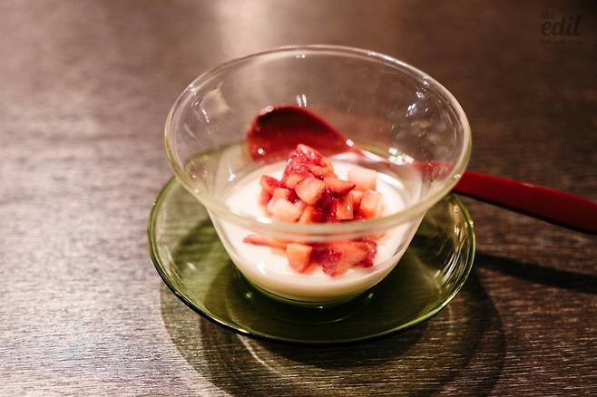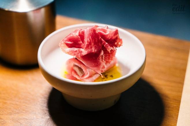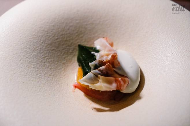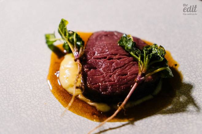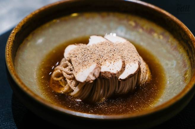 단 하나의 메뉴 때문이었다. 머스트루에 가봐야겠다고 결심하게 된 건. (세 번째 사진) 밀면 때문이다. 부산 밀면이라고 했을 때 떠오르는 맛과 형태가 있지만, 머스트루는 조금 더 다르게 부산을 해석했다. 부산 밀면집에서 쓰지 않는 앉은뱅이밀을 써서 면을 뽑고, 버섯으로 육수를 만드는 등 음식 이름이 ‘밀면’이 아니었다면 밀면인지 몰랐을 것이다. 감칠맛이 좋은데, 자극적인 감칠맛은 아니다. 땅이 오랫동안 간직한 기운을 조심스레 한 모금 들이키는 기분이 드는 국물 맛이다. 미쉐린 가이드 2025 셀렉티드에 올랐다.