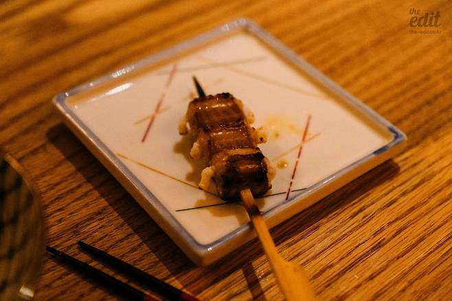 부산에는 괜찮은 야키토리 전문점이 꽤 있다. 야키토리 온정, 야키토리 숯, 그 중에서 가장 유명한 곳은 바로 ‘야키토리 해공’. 다른 곳에서는 경험하기 힘든, 꼼장어 꼬치가 있어서 재밌고, 공간이 좁지 않은 점도 마음에 든다. 중앙에서 부채질을 하며 구이를 집도하는 모습이 잘 보여서 싱글 다이너도 심심하지 않게 즐길 수 있다. 부산국제영화제 기간 중 일요일에는 특별히 런치도 운영한다. 부산을 떠나기 전에 야키토리에 샴페인 한 잔 하라는 뜻. 콜키지는 무료다.