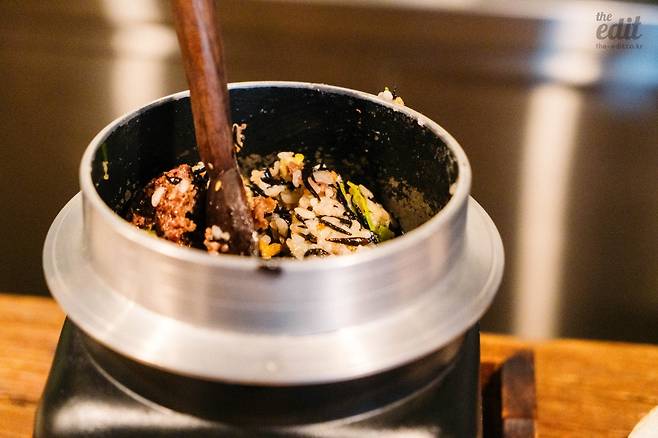 미쉐린 빕구르망에 비빕밥 전문점이 올랐다고 하니 가지 않을 수 없었다. 비비재의 철학은 ‘건강한 제철 식재료를 아낌없이 사용하는 것’. 기본을 잘 지킨 비빔밥이라 먹어 보면 ‘역시 미쉐린이 인정한 비빔밥은 다르네’ 같은 반응이 나오긴 힘들다. 하지만, 들기름 향이 고소하게 올라오는 비빔밥에 올라간 하나 하나의 토핑은 모난 곳 없이 조화롭게 어울린다. 어떻게든 트집을 잡으려고 하는 염세주의자도 이런 비빔밥 앞에서는 군소리 없이 한 그릇 뚝딱할 수 있을 것 같다. 모든 비빔밥은 1,000원을 추가해 돌솥 비빔밥으로 변경할 수 있다.
