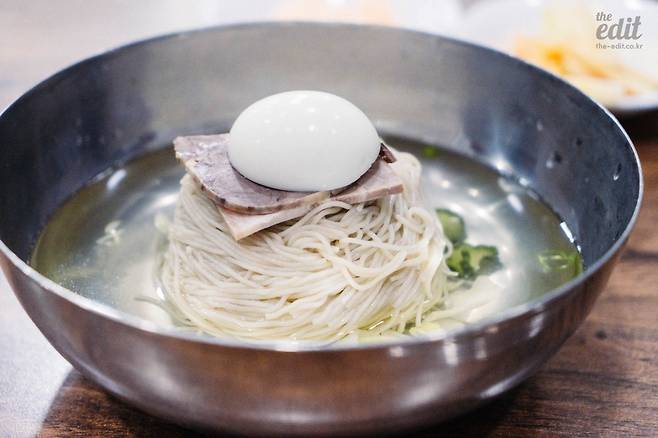 부산을 대표하는 차가운 면은 언제나 밀면이었다. 평냉이 들어갈 틈은 없었다. 평냉 애호가들도 부산에 가면 밀면을 먹게 되는데 그 이유는 밀면이 유명한 것도 있지만 특별히 맛있는 평냉도 없기 때문이다. 괜찮은 평양냉면은 있지만 서울에 괜찮은 곳이 더 많은데 ‘굳이’라는 생각 때문에 항상 밀면을 먹게 된다. 백일평냉은 에디터가 부산에서 먹은 가장 맛있는 평냉이다. 2023년에 100일만 운영하는 방식으로 데뷔했고, 2024년 봄에 정식으로 오픈했다. 굳이 분류를 하자면 육향이 강하지 않고, 시원함과 개운함이 있는 장충동계열에 가깝다.