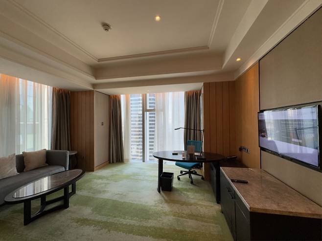 웨스틴 호텔에서 5박을 했습니다. 5박 60만원 정도로 스위트룸 숙박.