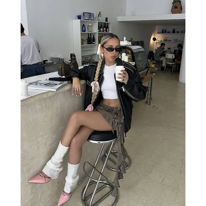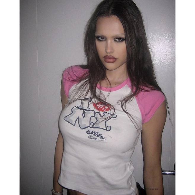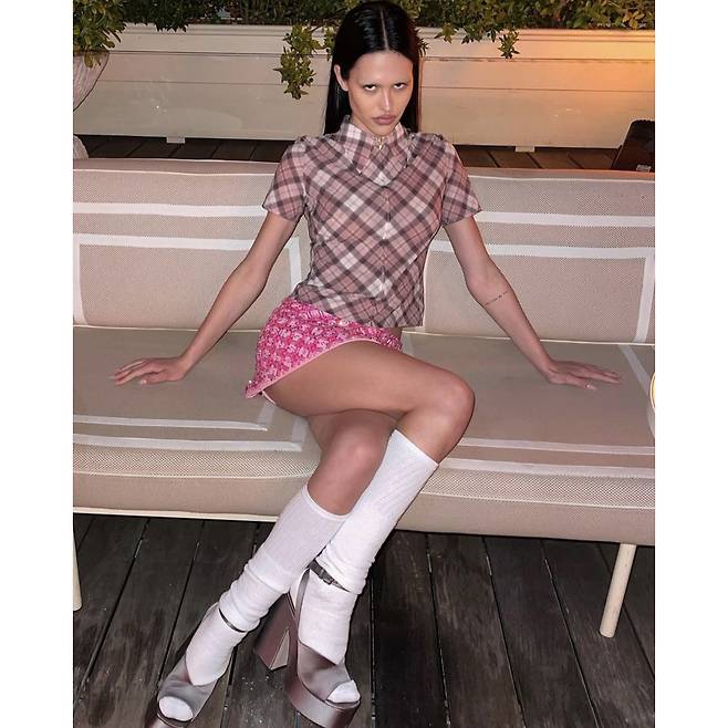 Y2K 하이틴 무드를 연출하고 싶다면 아멜리아 그레이 햄린의 룩을 주목할 것. 그녀는 미니멀한 아이템 조합으로 임팩트 있는 스타일링을 완성한다. 주로 채도가 높은 핑크 컬러를 활용해 간결한 아이템 매치만으로도 시선을 사로잡는다. 캡 슬리브의 베이비 티셔츠, 슬림하게 밀착되는 베르사체 레더 원피스, 프레피 무드의 체크 셔츠 등 그녀의 룩은 군더더기 없는 실루엣으로 보디라인을 보다 늘씬하게 서포트하는 것이 특징.