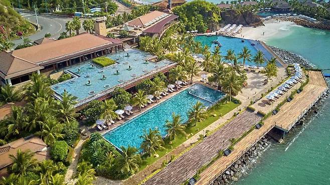 커플과 가족 여행객 모두에게 추천하는 5성급 리조트인 '디 아남'은 드넓은 해변과 푸른 잔디밭이 어우러져 로맨틱한 분위기를 자아냅니다. 조용한 휴식을 원하는 이들에게 이상적인 곳으로, 시내 관광보다는 편안한 리조트 생활을 선호한다면 더 없이 좋은 선택지입니다. 리조트 내 3개의 야외 수영장과 전용 해변은 물론, 객실 전용 수영장이 딸린 풀빌라에서 프라이빗한 휴가를 만끽할 수 있습니다.