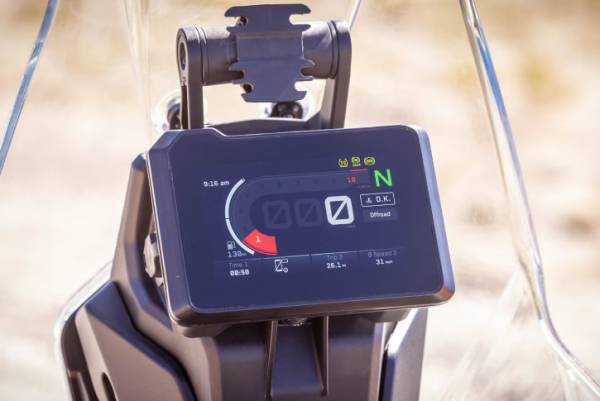 음악 감상, 턴바이턴 내비게이션, 전화 수신 기능이 대표적이다. 390 엔듀로 R과 달리, 앞바퀴 ABS는 완전히 비활성화할 수 없다. 크루즈 컨트롤은 옵션으로 제공될 예정이다. 울퉁불퉁한 산길에서는 오프로드 ABS의 개입이 거의 느껴지지 않는다.