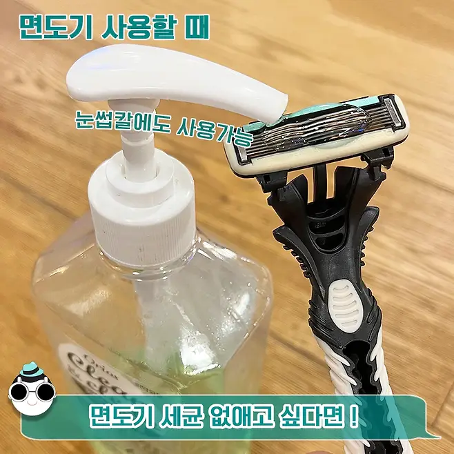 세균을 없애고 싶을 땐 면도기에 손소독제를 발라서 휴지로 펴주세요. 세균을 없애주는 건 물론이고 상처가 났을 땐 트러블을 예방할 수 있답니다!
