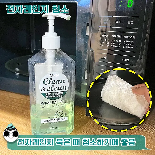 이럴 때 손소독제로 한번 슥~ 닦아주세요. 그런데 여기서 물과 식초를 활용한다면 묵은 때들은 한 번에 지워낼 수 있어요. 물과 식초를 3:1로 희석해서 전자레인지에 넣고 5분 정도 돌려주세요!