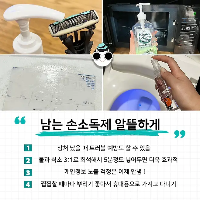 한번 살 때 대량으로 사놔서 그런지 아직 사용하지 않은 손소독제가 그득인데 말입니다.. 후! 이걸 그냥 두고만 있기엔 너무 아까워서 오늘은 손소독제를 더욱 유용하게 활용하는 방법을 가지고 왔어요.