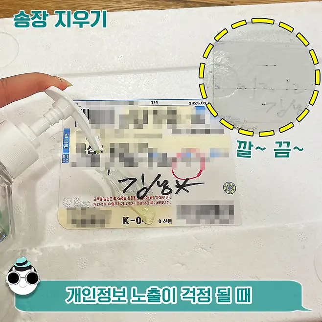 개인정보가 그대로 노출되어 있는 택배 송장! 이거 그냥 버리기 너무 찝찝해서 손으로 찢어서 버리곤 하는데 손소독제로 한번 지워보세요.