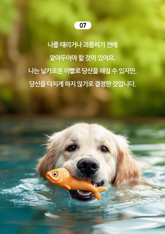 가끔 내가 실수할 때가 있어요.하지만 그건 당신을 괴롭히려고 그런 게 아니에요.그저 배가 고팠거나, 심심했거나, 혹은 무서웠던 거예요.