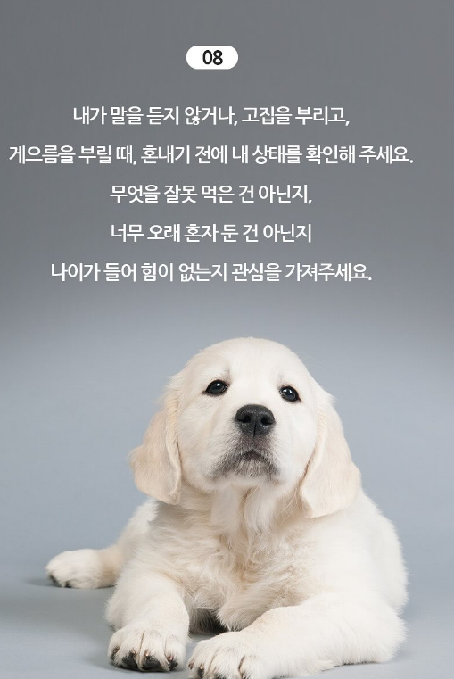 가끔 내가 실수할 때가 있어요.하지만 그건 당신을 괴롭히려고 그런 게 아니에요.그저 배가 고팠거나, 심심했거나, 혹은 무서웠던 거예요.