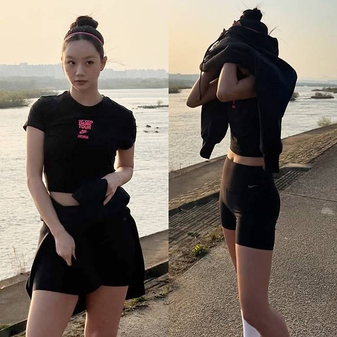 공개한 사진에서 혜리는 짧은 레깅스에 반팔 티셔츠, 핀 스트라이프 반팔에 조거팬츠를 착용한 트레이닝룩으로 군살제로의 탄탄 몸매를 드러냈다.