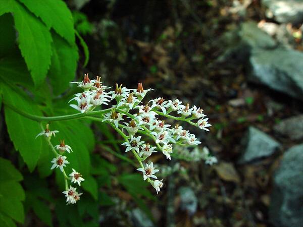 촉촉한 봄빛아래 수줍게 피어나는 돌단풍. 잎은 단풍잎을 닮고, 작은 흰꽃은 별이나 이슬방울처럼 맑다. 잎은 여름엔 푸르고 가을엔 붉게 물든다.