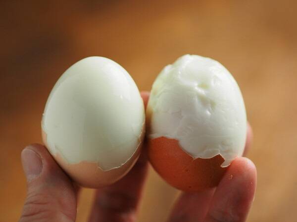 차가운 물이 아닌 끓는 물에 계란을 넣으면 껍질과 흰자가 덜 달라붙습니다.