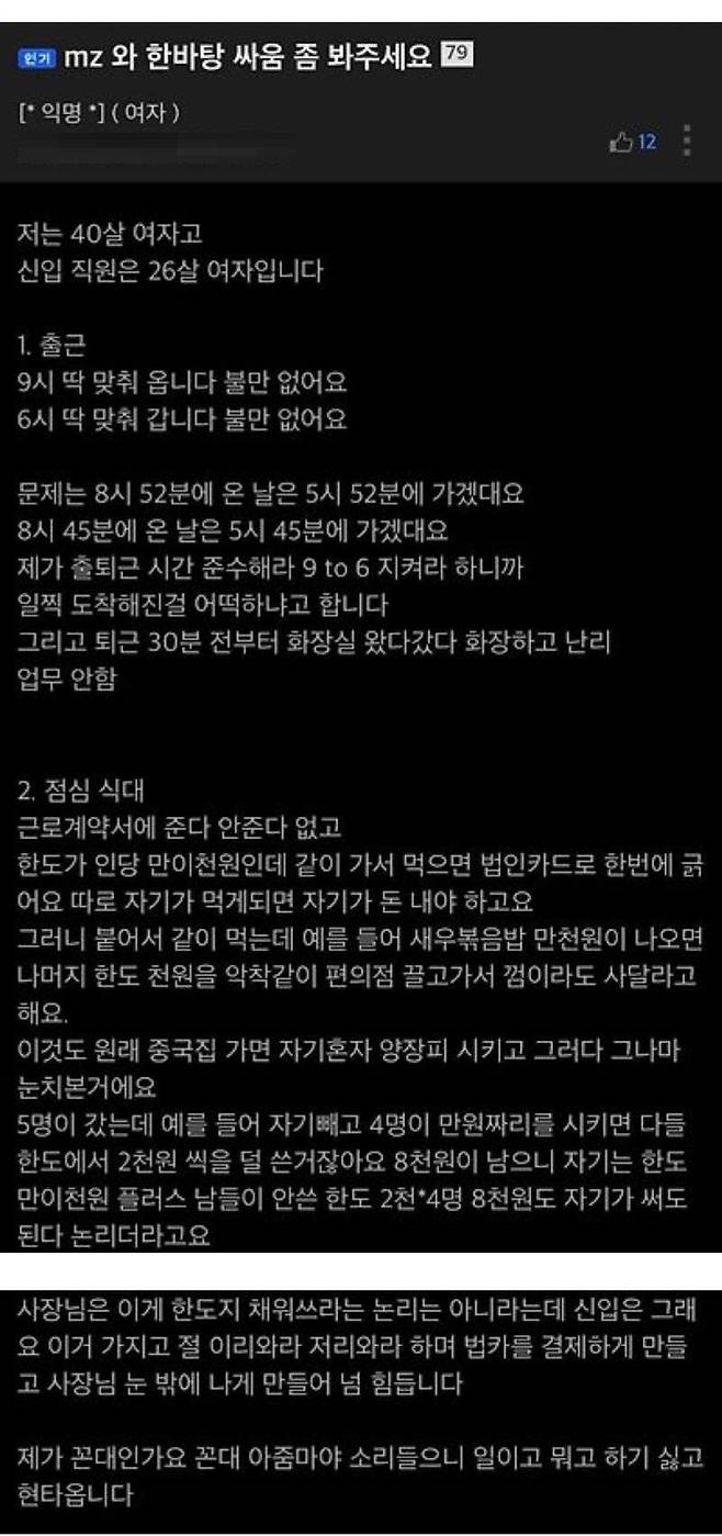 20대 여직원과 한바탕 싸움한 40대 여직원