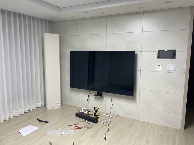 그리고 추가로 무타공 벽걸이와 미세방충망 작업도 셀프로 했는데 무타공벽걸이 같은 경우엔 업체에서 35만정도 한다고 해서 셀프로 18만원 정도에 했고