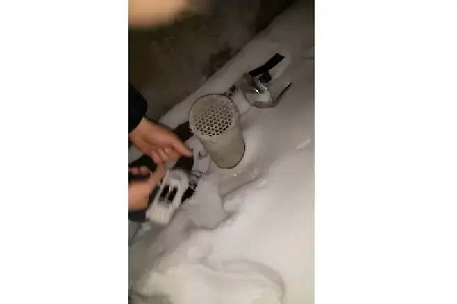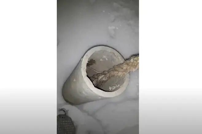 파이프 내부는 깊었고, 손으로는 닿지 않았습니다. 구조를 시도한 사람은 로프를 들고 왔습니다.