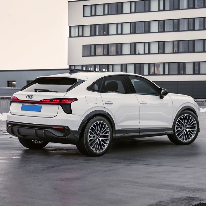 2026년형 Q3 스포츠백은 기존 모델과 유사한 측면 디자인을 보이지만, 전후면 디자인에 큰 변화가 예상된다. 큰 휠과 레드 브레이크 캘리퍼로 스포티한 이미지를 강조했으며, 후면의 윙 형태 LED 테일라이트와 전면의 작고 스포티한 라디에이터 그릴도 눈에 띈다.