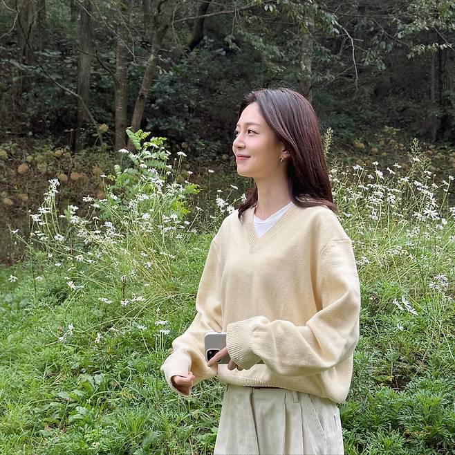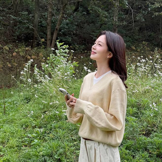 소재가 주는 따뜻함 덕분에 가을 햇살 아래에서 더 편안하게 빛났어요.