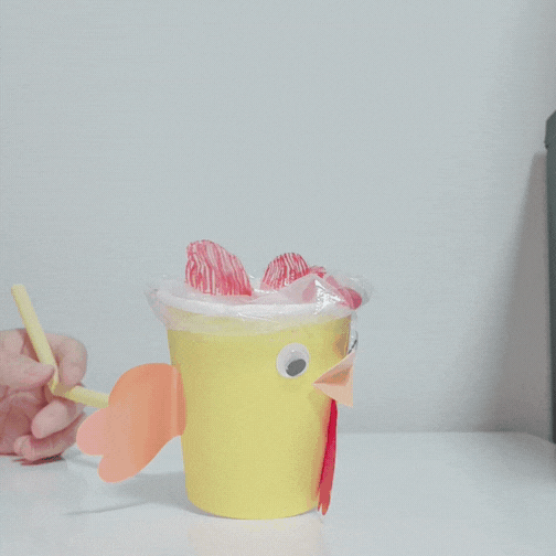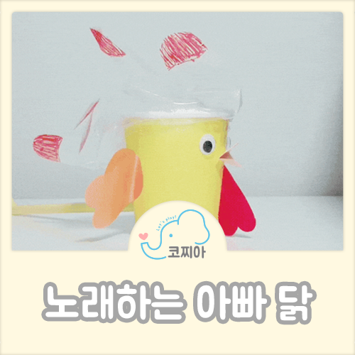 오늘 소개해드릴 놀이는 바로 노래하는 아빠닭이에요! 아이랑 종이컵으로 어떤걸 만들면 좋을까 찾아보다 만들어 보았답니다. 원래는 뿔피리를 넣어 소리나게 만들려고 했지만 집에 플라스틱 뿔피리가 들어간 인형이 보이지 않아서 그냥 빨대로 만들었답니다. 만약에 뿔피리를 구하실 수 있다면 빨대에 끼워서 소리가 나도록 악기처럼 만들면 좋을 것 같아요! (빨대에 끼우는 플라스틱 뿔피리는 인터넷에서 4~5개에 천원 정도면 살 수 있답니다.)