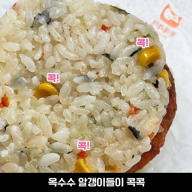 불고기버거에는 밥에 옥수수가 안 들어있어서 몰랐는데, 치킨버거를 보니 야채볶음밥에 옥수수도 들어가네요.