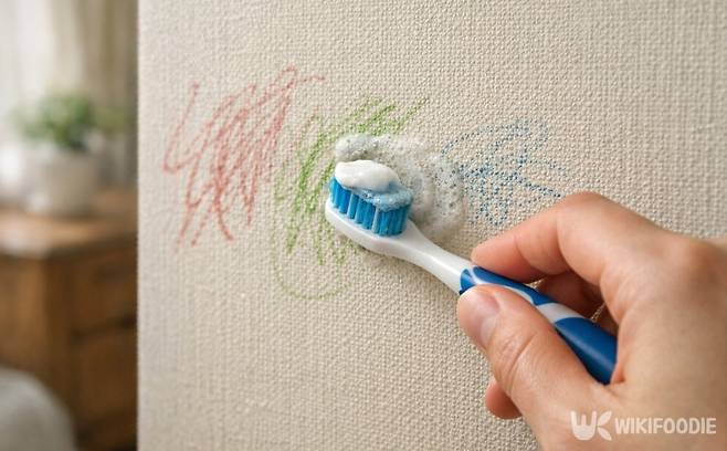 아이들이 벽에 남긴 크레파스 자국이나 손이 자주 닿아 생긴 검은 얼룩에는 치약이 잘 맞는다. 치약 속 미세한 연마 성분은 벽지 표면을 과하게 긁지 않으면서도 색소를 분리해 낸다. 동시에 계면활성제가 유분 성분을 녹여준다.