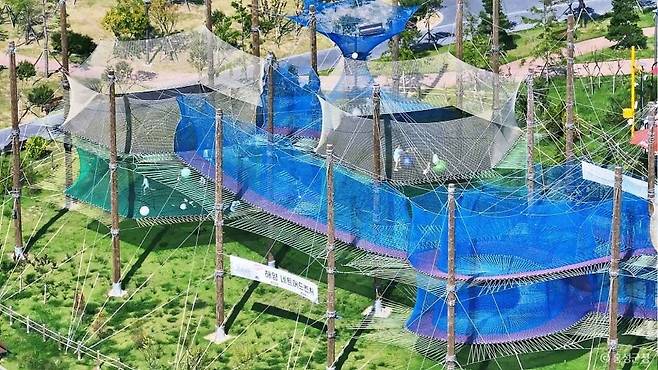 모든 것이 서해와 함께 조화를 이룬 홍성 여행에서 가장 몸이 즐거운 곳. 남당항 인근에 자리 잡은 네트 어드벤처는 전국에서 최초로 바다를 바라보며 신나게 놀 수 있는 이색 레포츠 시설인데요.