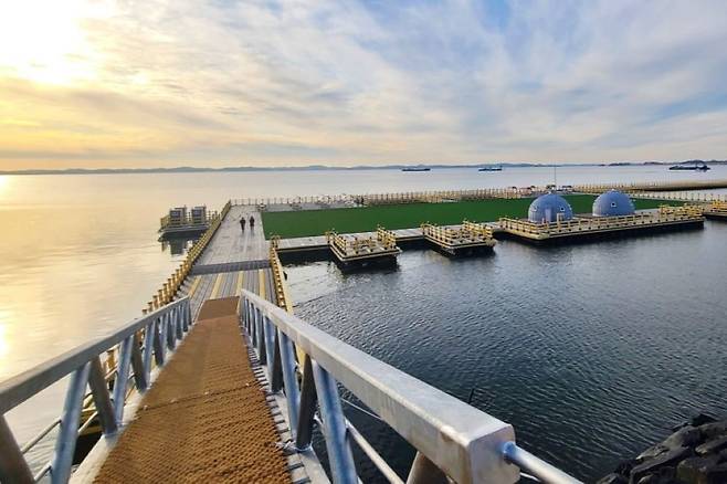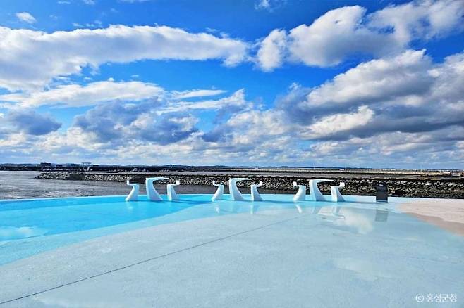 궁리항 해변을 따라 걷다 보면 눈앞에 펼쳐진 무려 5,057㎡ 규모의 해상 테마파크! 탁 트인 서해를 배경으로 이런 멋진 해상공원을 홍성 여행에서 만날 수 있었다니. 지금이라도 알게 돼서 다행입니다.