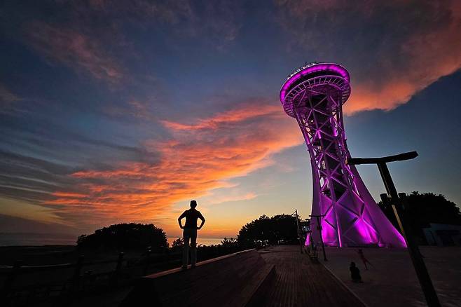 높이 65m에 이르는 홍성 스카이타워, 홍성 여행을 대표하는 명소이자 해양 관광의 시작이 되는 곳이기도 한데요. 256가지 색을 표현하는 RGB 조명으로 홍성의 밤을 화려하게 빛내고, 꼭대기에서는 둘레 66m의 스카이 워크 체험 시설을 즐길 수 있죠.
